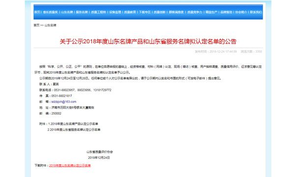 祝賀我公司2018年度“山東名牌”產(chǎn)品通過認定