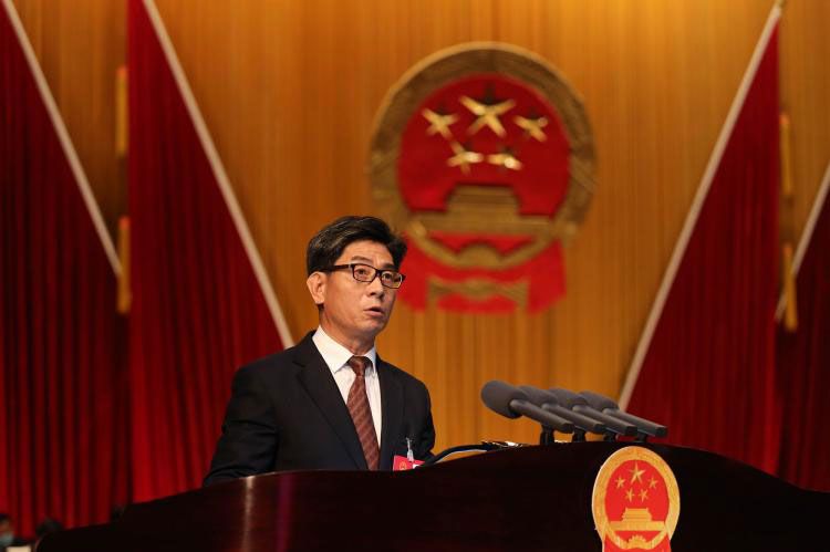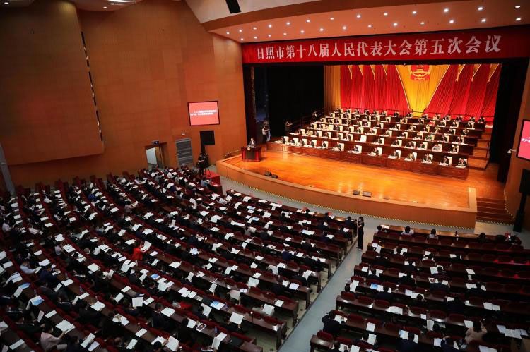 上午8時(shí)30分,張惠宣布:日照市第十八屆人民代表大會第五次會議開幕。會場全體起立,高唱國歌。