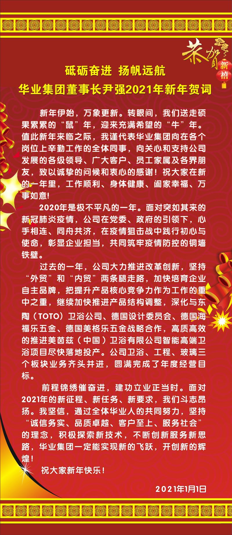砥礪奮進(jìn) 揚帆遠(yuǎn)航丨華業(yè)集團(tuán)董事長尹強2021年新年賀詞