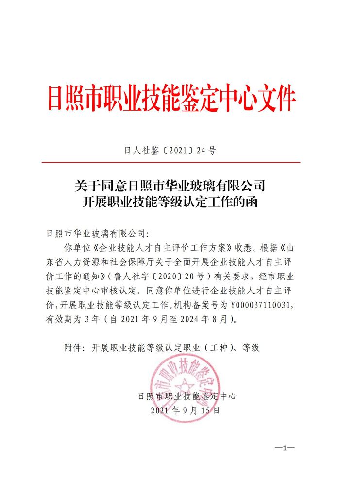 2021年9月15日,經(jīng)日照市職業(yè)技能鑒定中心審核認(rèn)定,同意我公司進(jìn)行企業(yè)技能人才自主評(píng)價(jià),開(kāi)展職業(yè)技能等級(jí)認(rèn)定工作。